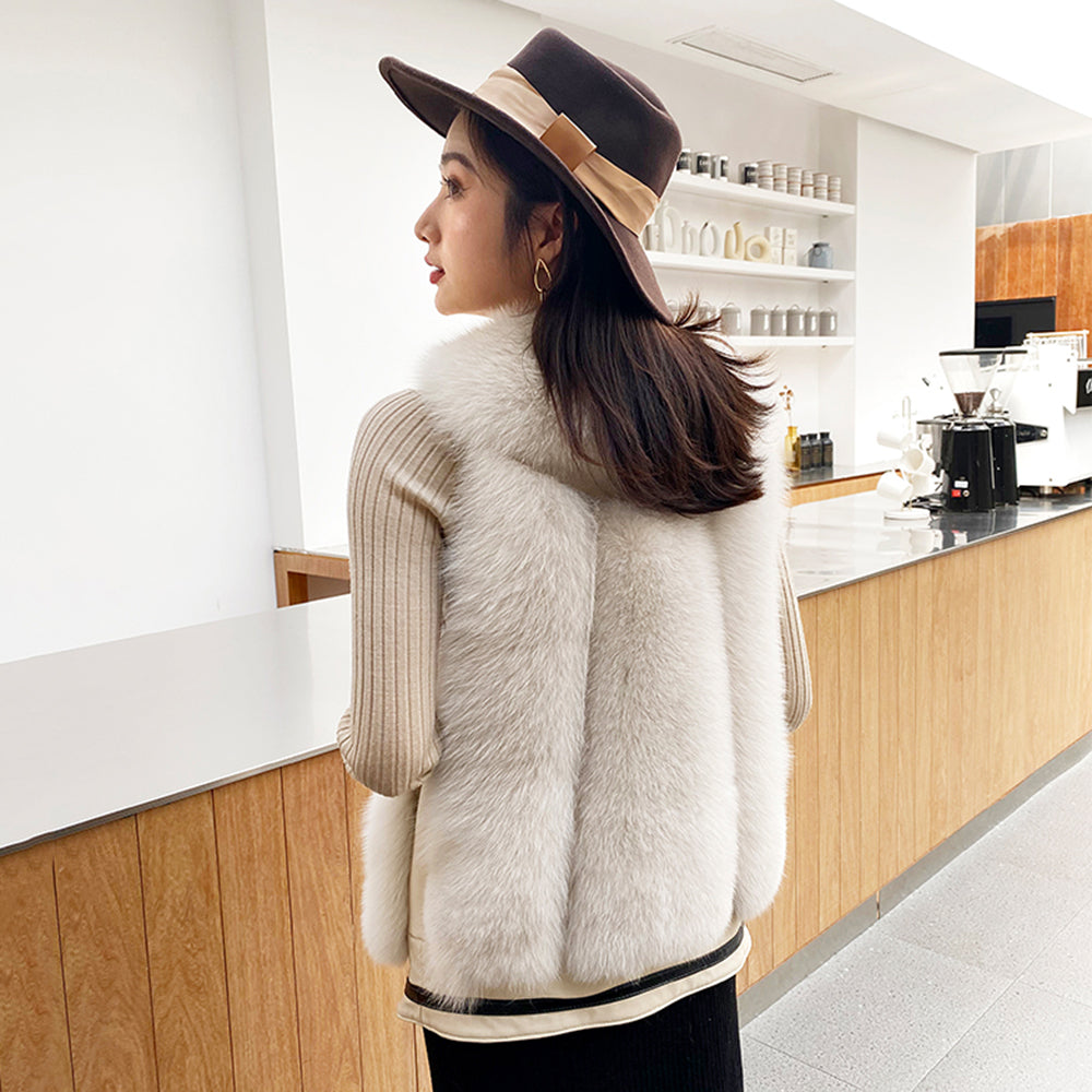 Women Winter Warm Fashion Real Fox Fur Gilets Fluffy Vest Waistcoat